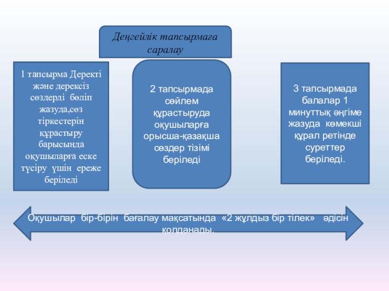 Оқушылар бір-бірін бағалау мақсатында «2 жұлдыз бір тілек» әдісін қолданады.