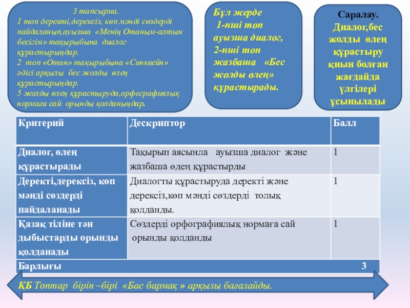 2-нші топ жазбаша «Бес жолды өлең» құрастырады.