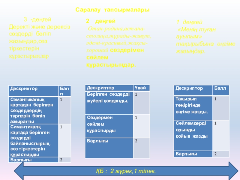 2 тапсырмада сөйлем құрастыруда оқушыларға орысша-қазақша сөздер тізімі беріледі