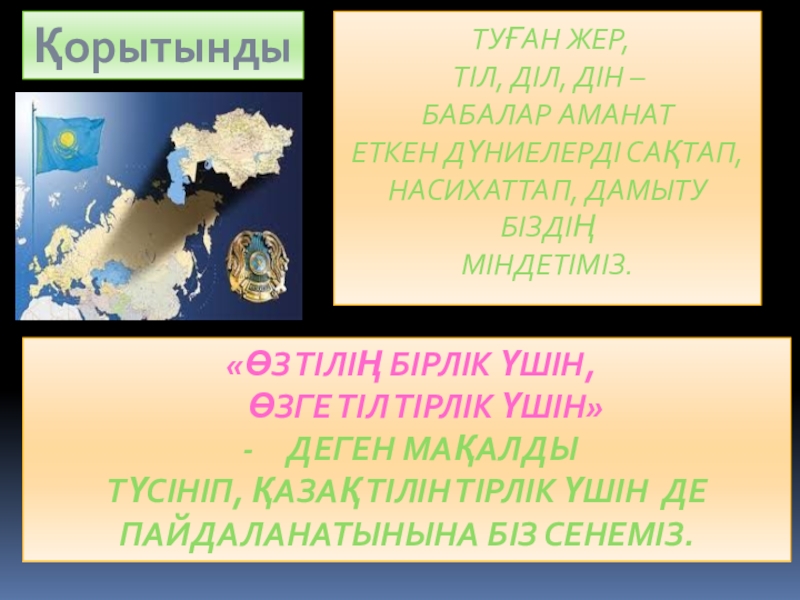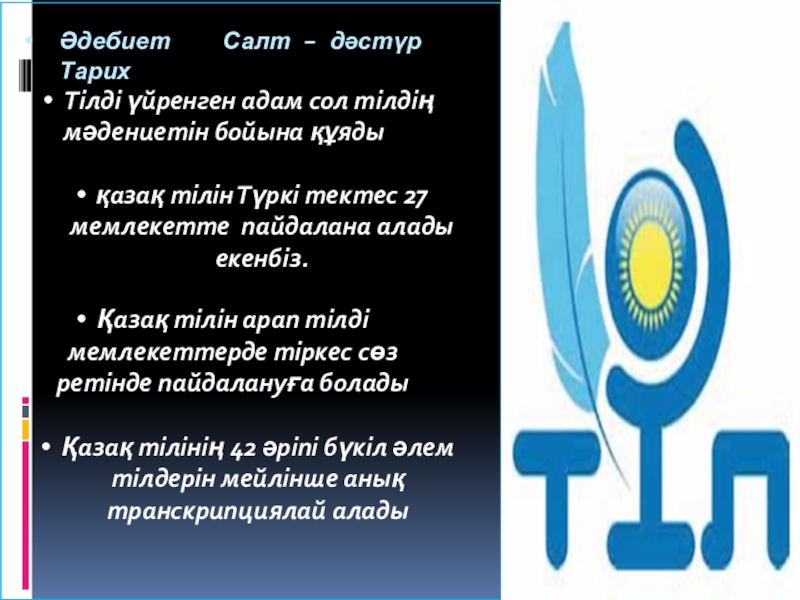 қазақ тілін Түркі тектес 27 мемлекетте пайдалана алады екенбіз.
