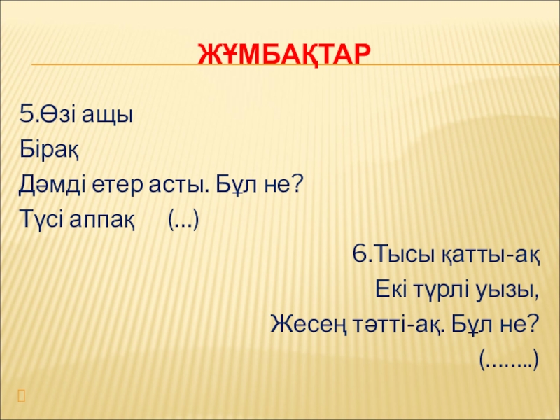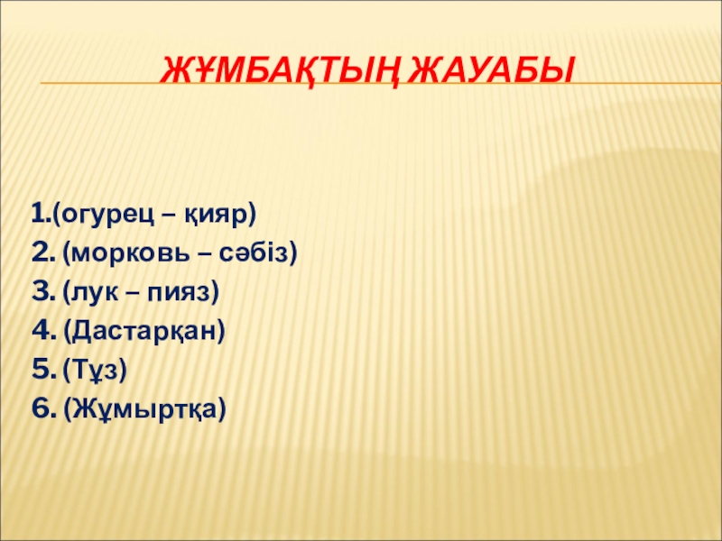 Слайд 19ЖҰМБАҚТЫҢ ЖАУАБЫ