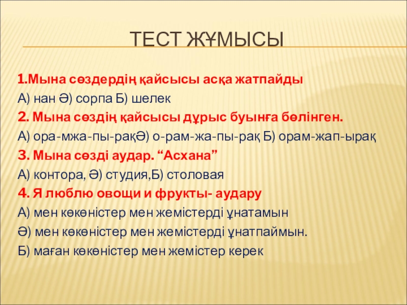 Слайд 30ТЕСТ ЖҰМЫСЫ