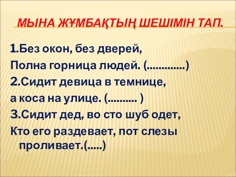 Слайд 16МЫНА ЖҰМБАҚТЫҢ ШЕШІМІН ТАП.