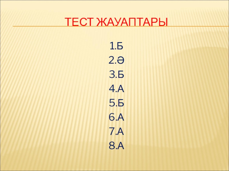Слайд 32ТЕСТ ЖАУАПТАРЫ