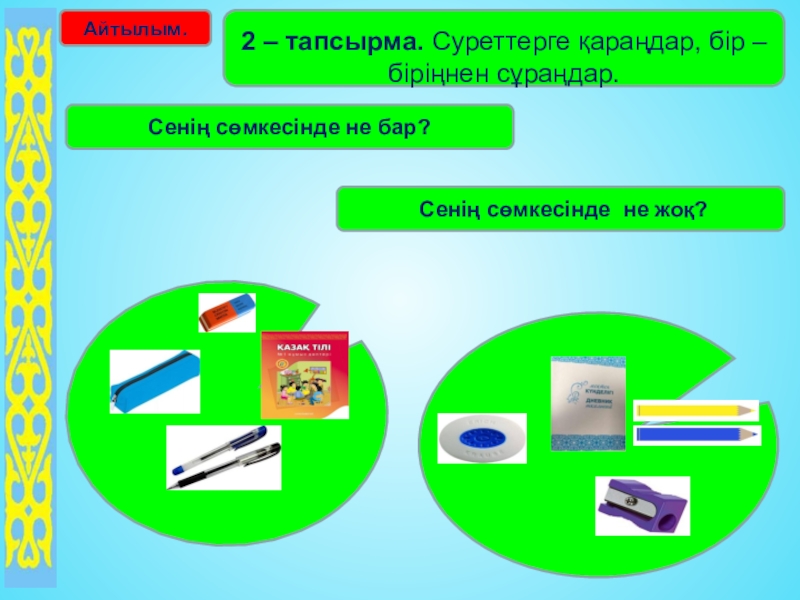 Сенің сөмкесінде не жоқ?