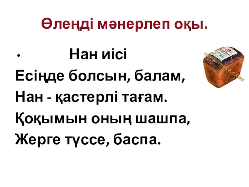 Өлеңді мәнерлеп оқы.         Нан иісіЕсіңде болсын, балам,Нан - қастерлі