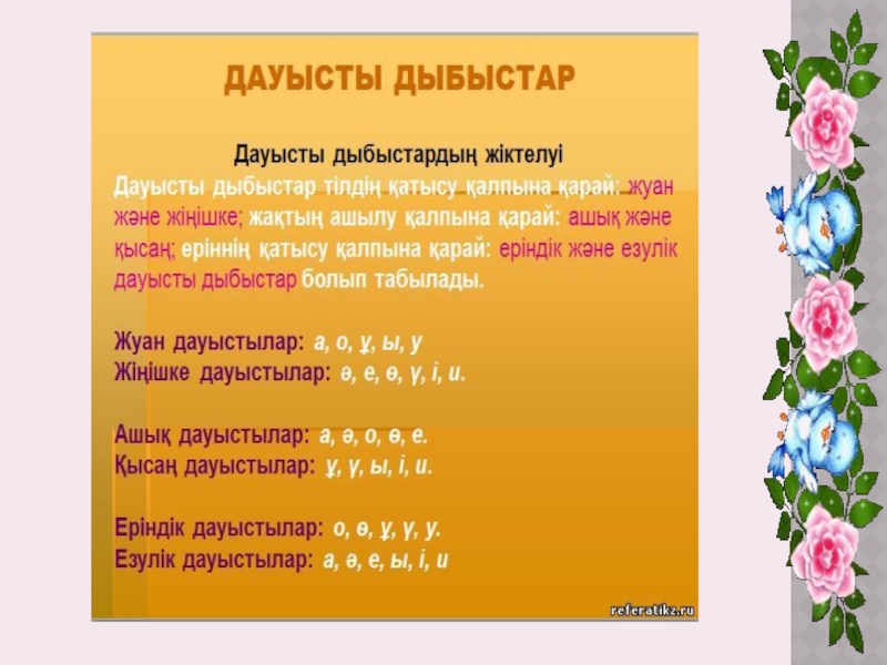 Презентация, доклад по казахскому языку на тему Дауысты дыбыстар (2 класс)