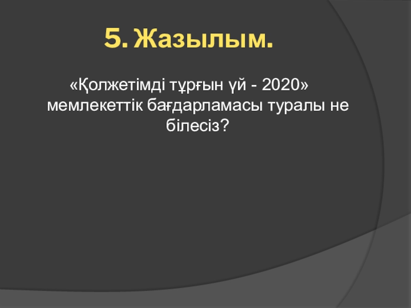 5. Жазылым.«Қолжетімді тұрғын үй - 2020» мемлекеттік бағдарламасы туралы не білесіз?