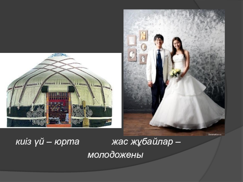 киіз үй – юрта 			жас жұбайлар – 						молодожены