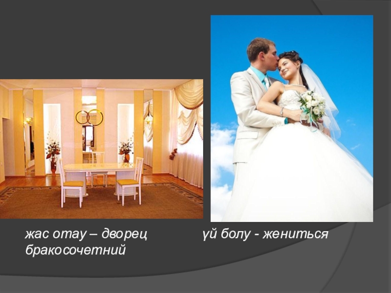 жас отау – дворец 	      үй болу - женитьсябракосочетний