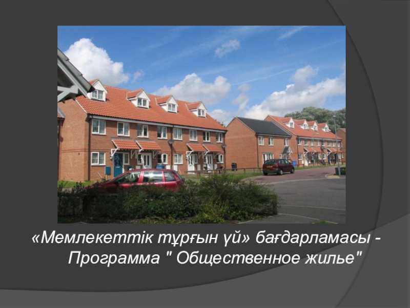 Слайд 9«Мемлекеттік тұрғын үй» бағдарламасы - Программа " Общественное жилье"