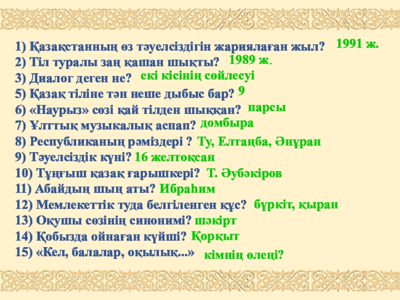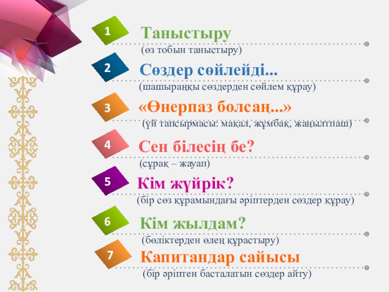 (үй тапсырмасы: мақал, жұмбақ, жаңылтпаш)