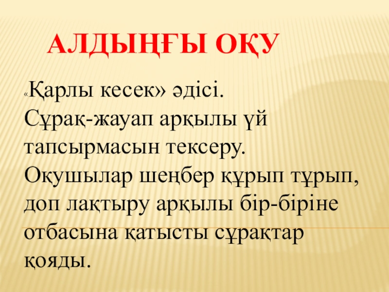 Сұрақ-жауап арқылы үй тапсырмасын тексеру.
