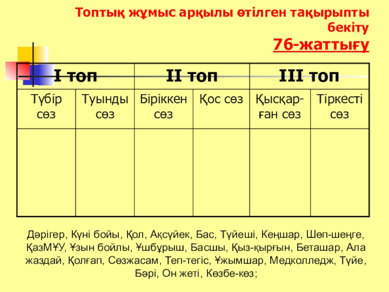 Слайд 10Топтық жұмыс арқылы өтілген тақырыпты бекіту 76-жаттығу