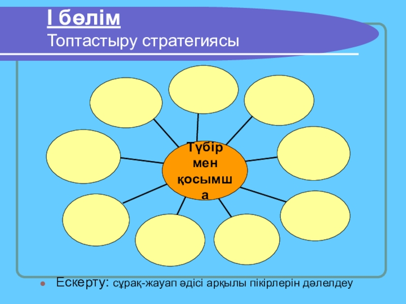 І бөлім Топтастыру стратегиясыЕскерту: сұрақ-жауап әдісі арқылы пікірлерін дәлелдеу