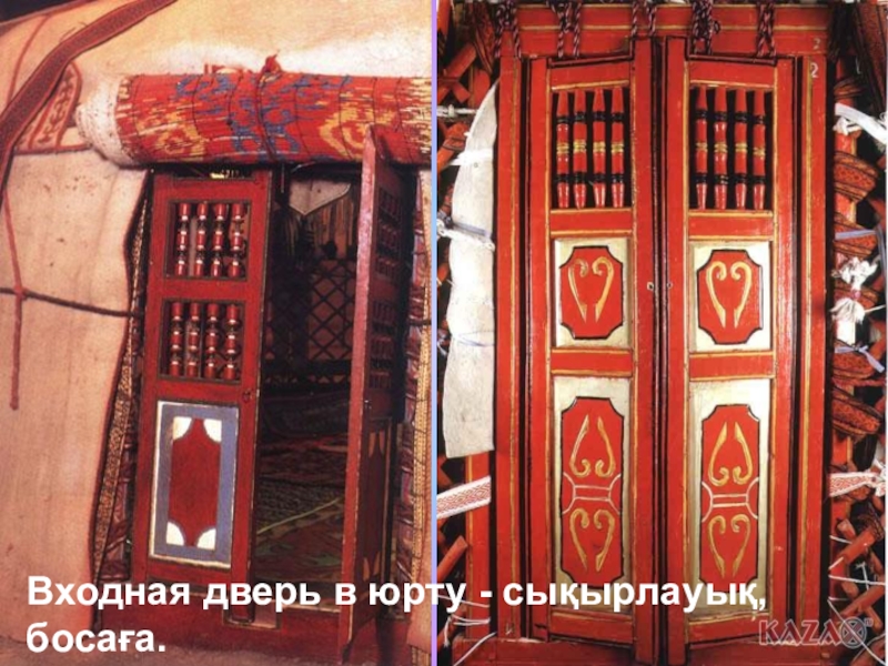 Слайд 22Входная дверь в юрту - сықырлауық, босаға.