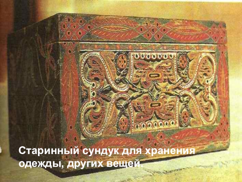 Слайд 41Старинный сундук для хранения одежды, других вещей.