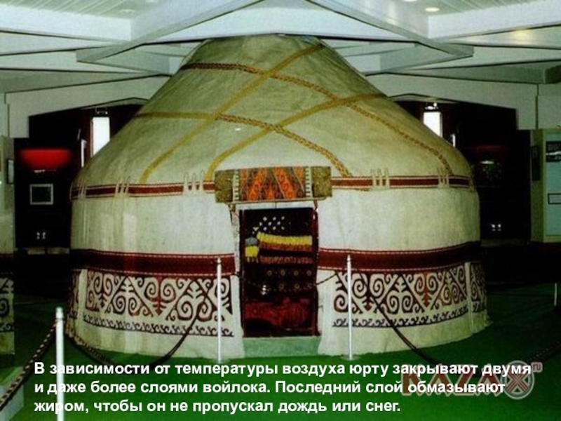 Слайд 18В зависимости от температуры воздуха юрту закрывают двумя и даже более