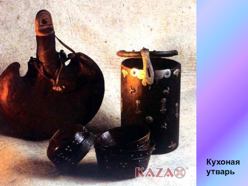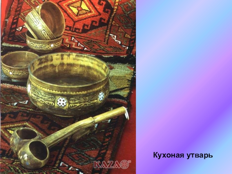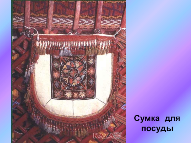 Слайд 57Блюдо и ложка для разливания кумыса. Чехол для блюда.