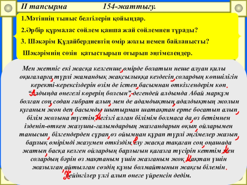 1.Мәтіннің тыныс белгілерін қойыңдар.