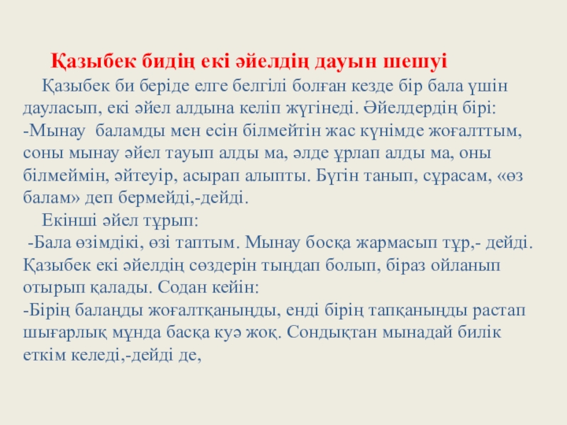 Слайд 4 Қазыбек бидің екі әйелдің дауын шешуі