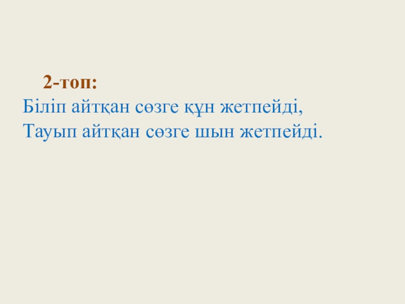 2-топ:Біліп айтқан сөзге құн жетпейді,Тауып айтқан сөзге шын жетпейді.