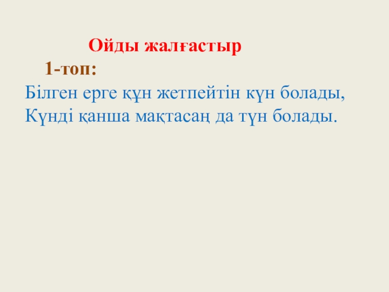 Ойды жалғастыр  1-топ:Білген ерге құн жетпейтін күн болады,Күнді қанша