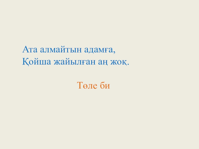 Ата алмайтын адамға,Қойша жайылған аң жоқ.           Төле