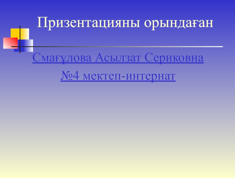 Призентацияны орындағанСмағұлова Асылзат Сериковна№4 мектеп-интернат