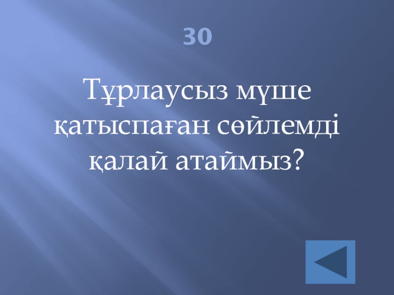 30Тұрлаусыз мүше қатыспаған сөйлемді қалай атаймыз?