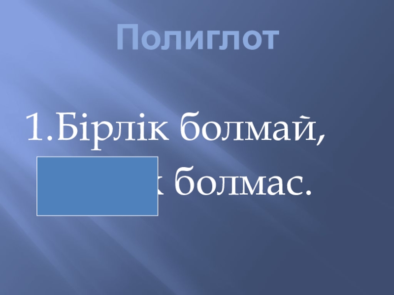 Полиглот1.Бірлік болмай,  тірлік болмас.