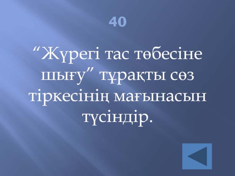 40“Жүрегі тас төбесіне шығу” тұрақты сөз тіркесінің мағынасын түсіндір.