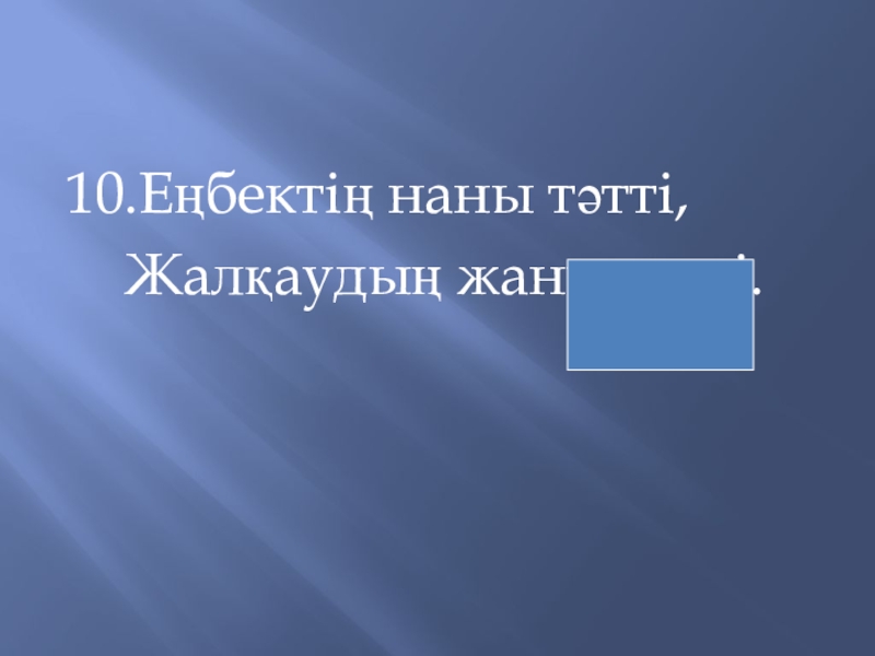 10.Еңбектің наны тәтті,  Жалқаудың жаны тәтті.