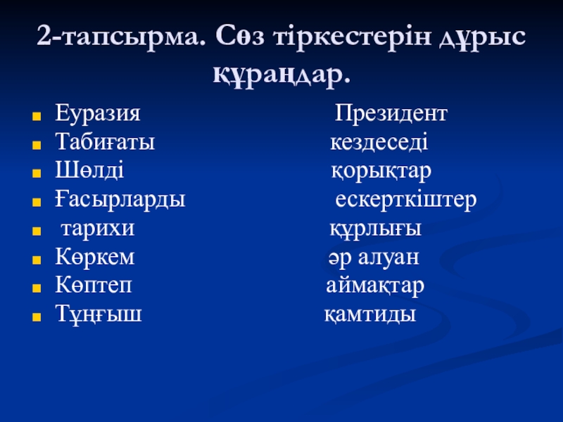 Слайд 52-тапсырма. Сөз тіркестерін дұрыс құраңдар.
