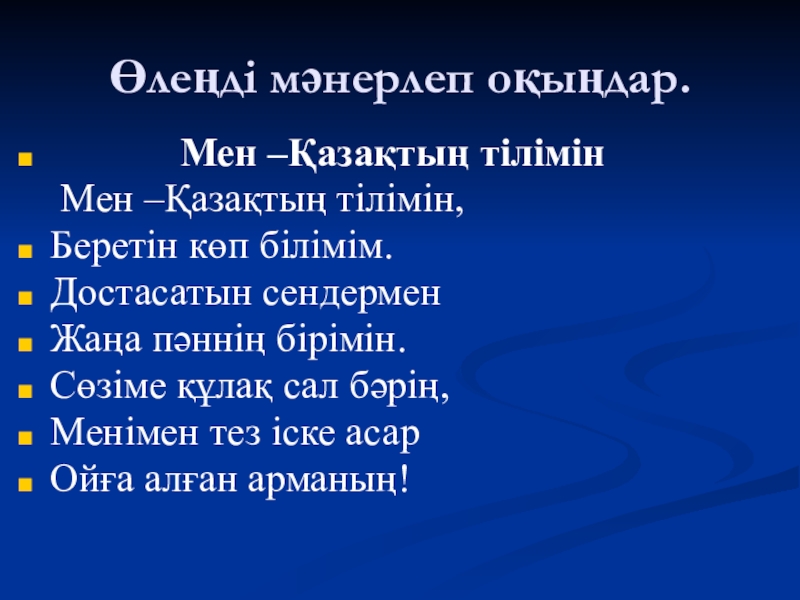 Слайд 6Өлеңді мәнерлеп оқыңдар.