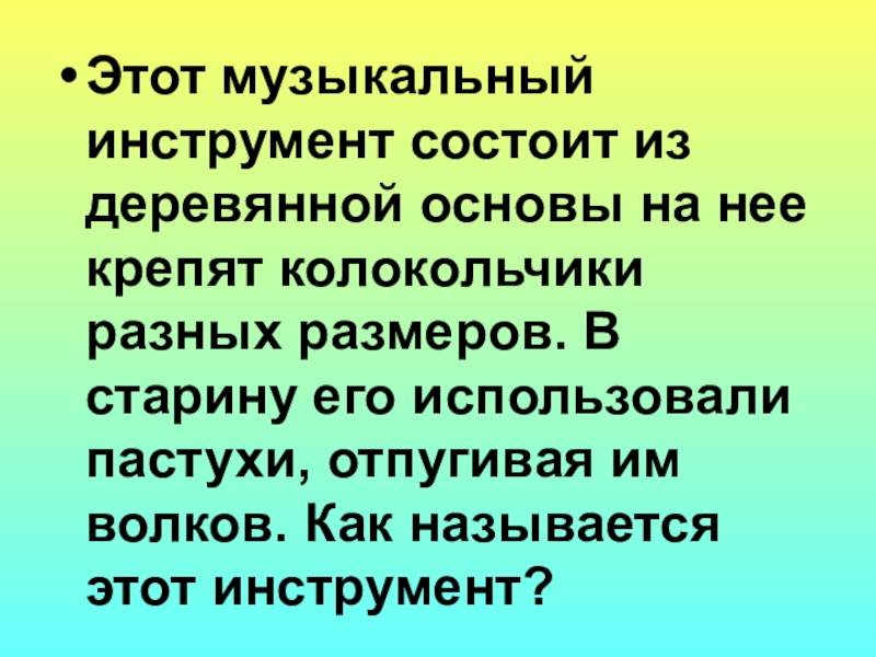 разных размеров. В старину его использовали пастухи, отпугивая им волков. Как называется этот инструмент?