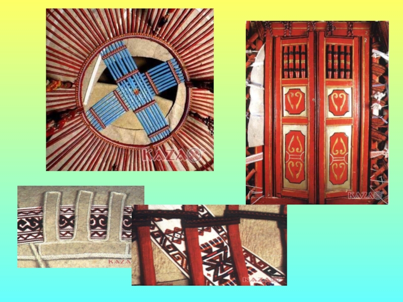 верхний круг юрты, ШАНЫРАК – верхняя часть юрты, СЫКЫРЛАУК – двери.