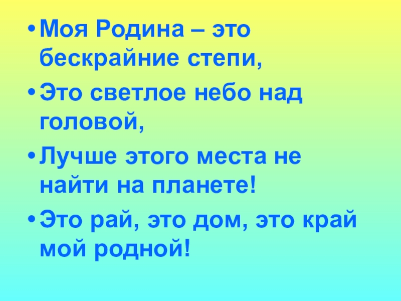 Слайд 3Моя Родина – это бескрайние степи,