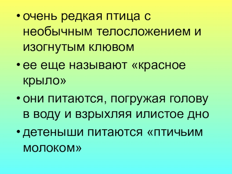 Слайд 57очень редкая птица с необычным телосложением и изогнутым клювом