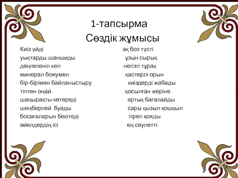 1-тапсырма   Сөздік жұмысыКиіз үйді