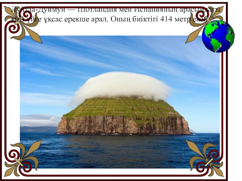 Слайд 30Луйтла-Дуймун — Шотландия мен Испанияның арасындағы киіз үйге ұқсас ерекше арал.