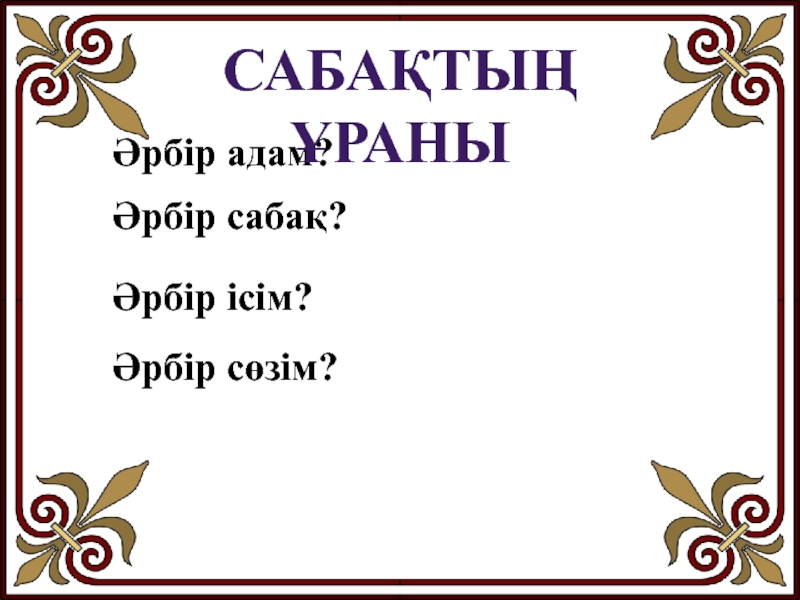 Әрбір адам? Әрбір сөзім? Әрбір ісім? Әрбір сабақ? САБАҚТЫҢ ҰРАНЫ