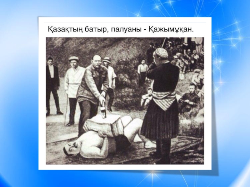 Слайд 5Қажымұқан Мұңайтпасұлы — қазақ халқының тарихындағы тұңғыш кәсіпқой балуан. Тұтас ғұмырын