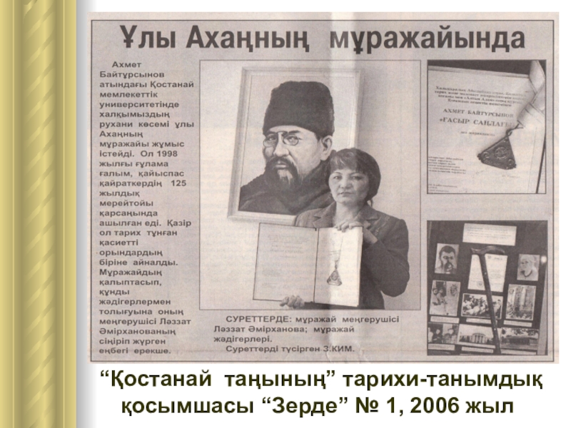 “Қостанай таңының” тарихи-танымдық қосымшасы “Зерде” № 1, 2006 жыл