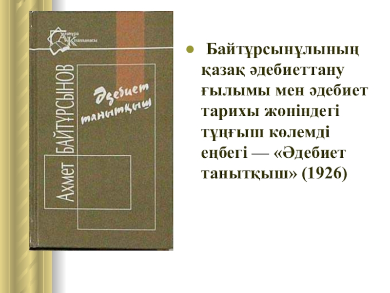 Слайд 6 Байтұрсынұлының қазақ әдебиеттану ғылымы мен әдебиет тарихы жөніндегі тұңғыш көлемді