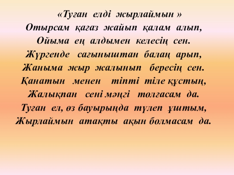 Тәрбиелік-оқушыларды патриоттық сезімге баулу, Отанға деген сүйіспеншілік