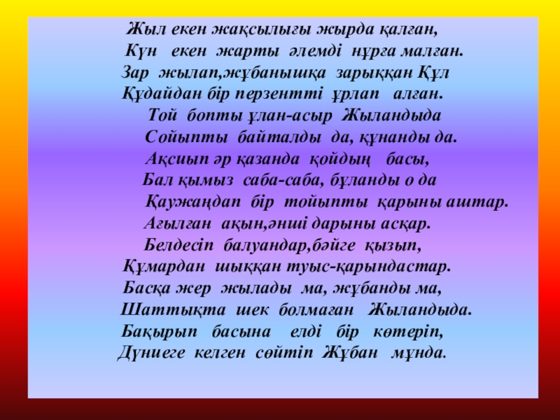 Дүниеге келген сөйтіп Жұбан мұнда.
