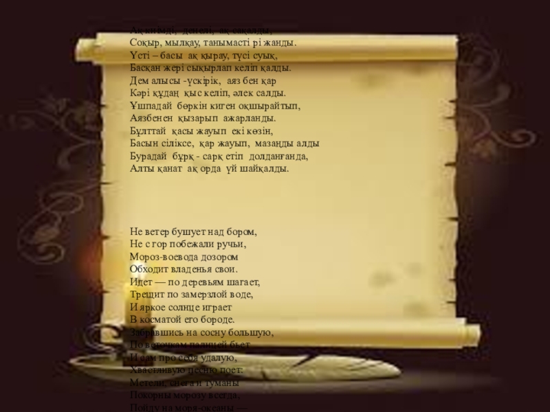 Мақсаты: Абайдың «Қыс» өлеңі мен Некрасовтың «Мороз,красный нос»