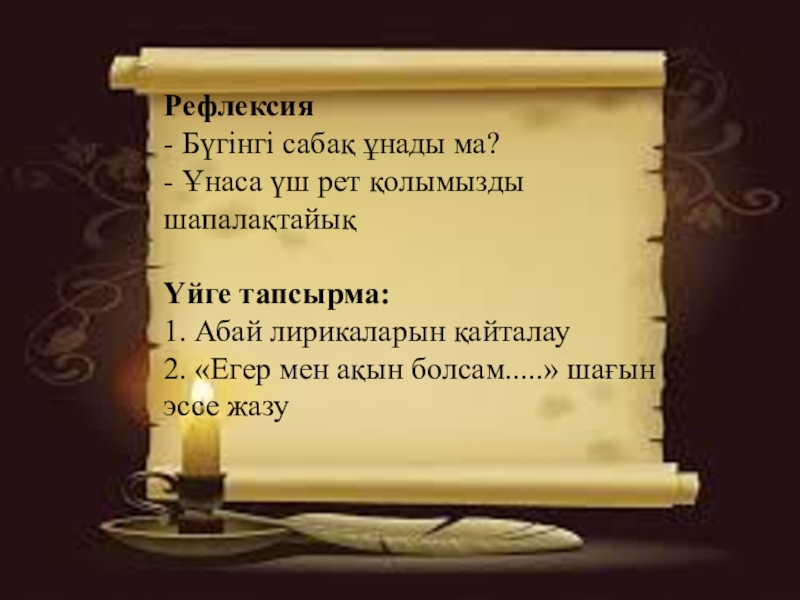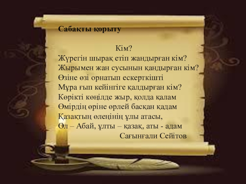 Мақсаты: «Ақын атаға хат» тақырыбына ойтолғау жазу