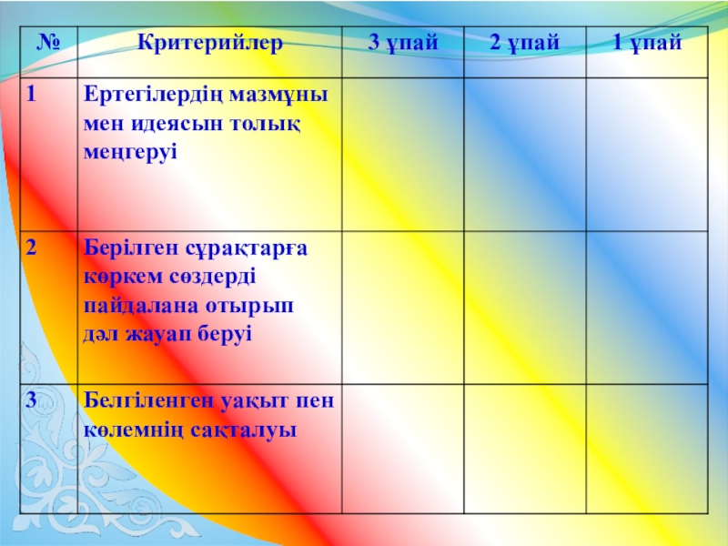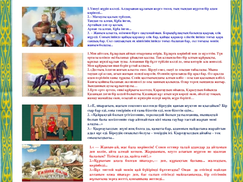 (Ертегі мазмұны бойынша құрылған жоспарды мазмұндық жағынан ұқсас мақал-мәтелмен салыстыру)